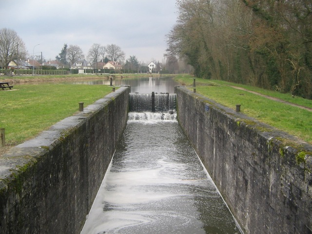 Franchir la passerelle de l'écluse et prendre à gauche le bord du canal, suivre jusqu'à l'écluse du Moulin Rouge.